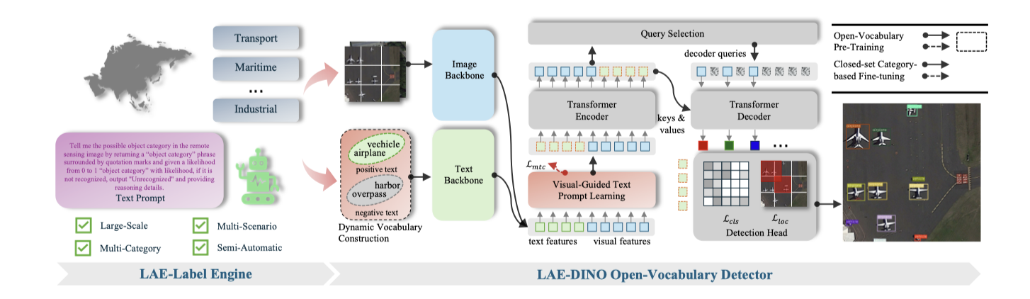 We propose a novel LAE-DINO detector for LAE, with dynamic vocaublary constuction (DVC) and VisualGuided Text Prompt Learning (VisGT) as novel modules. The Overall framework of our LAE-DINO: